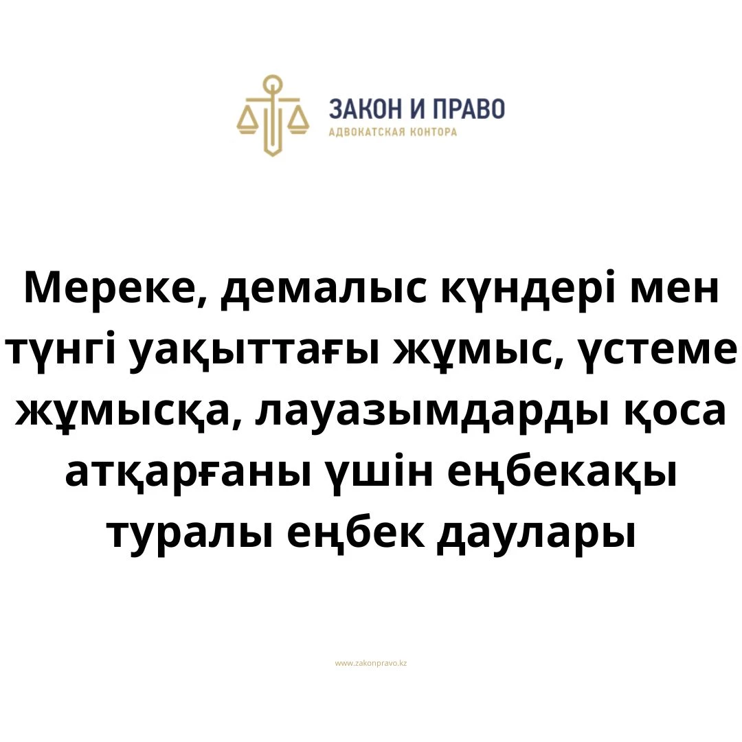 Мереке, демалыс күндері мен түнгі уақыттағы жұмыс, үстеме жұмысқа, лауазымдарды қоса атқарғаны үшін еңбекақы туралы еңбек даулары