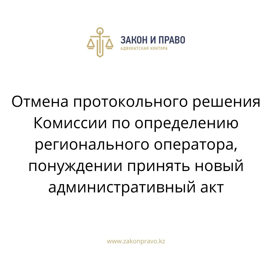 Даудың мәні: Өңірлік операторды айқындау жөніндегі комиссияның хаттамалық шешімінің күшін жою, жаңа әкімшілік актіні қабылдауға мәжбүрлеу туралы
