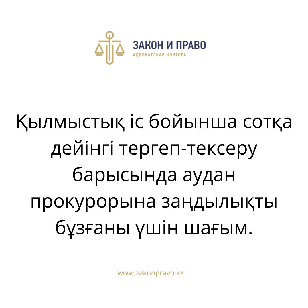Қылмыстық іс бойынша сотқа дейінгі тергеп-тексеру барысында аудан прокурорына заңдылықты бұзғаны үшін шағым.
