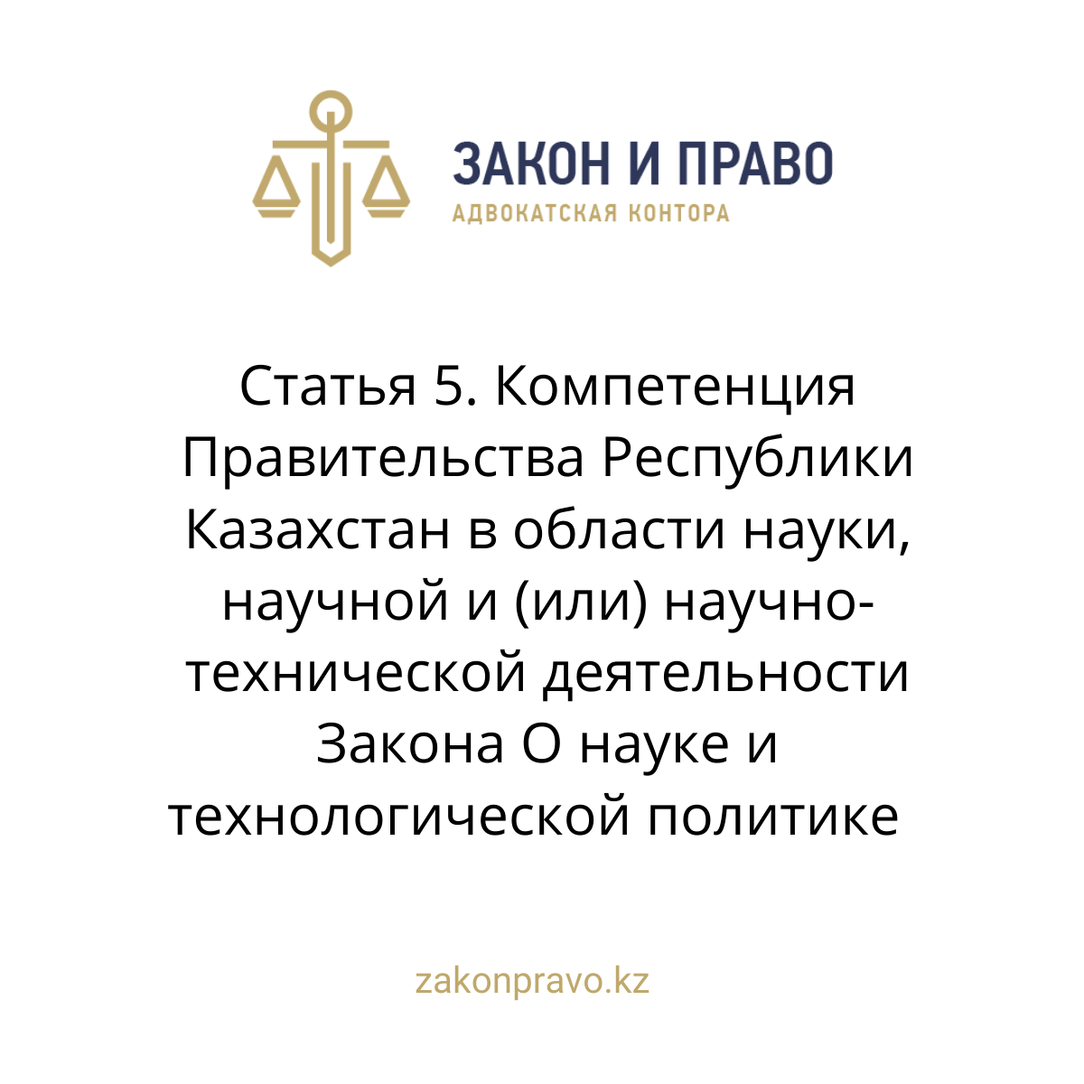 Статья 5. Компетенция Правительства Республики Казахстан в области науки, научной и (или) научно-технической деятельности Закона О науке и технологической политике