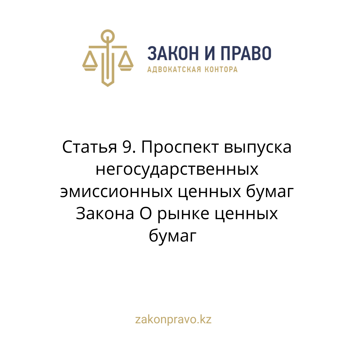 Статья 9. Проспект выпуска негосударственных эмиссионных ценных бумаг Закона О рынке ценных бумаг